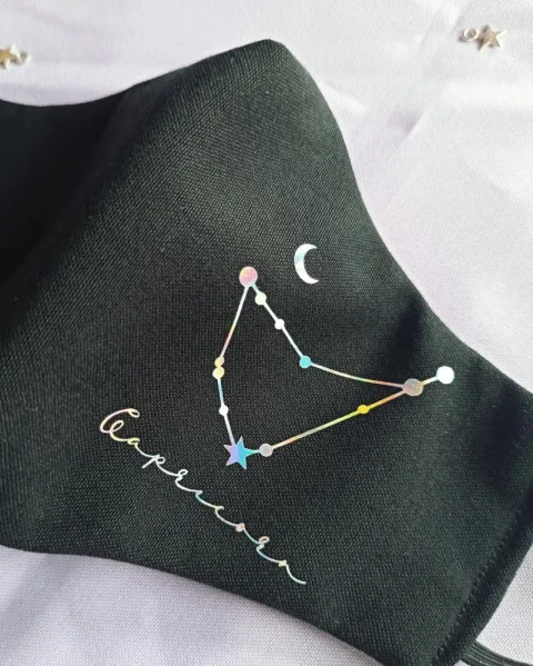 Cubrebocas con tu constelación. 🌙 Cubrebocas con aplicación personalizada holográfica. Textil lavable, triple capa, con cuentas deslizables para ajuste perfecto. Una vez que hagas la compra, déjame un mensajito con la constelación de tu preferencia 👇