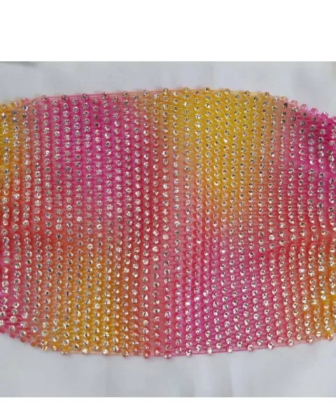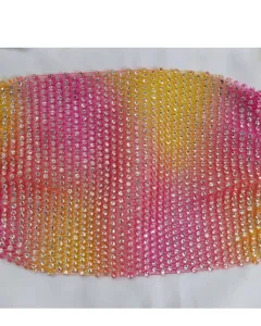 Cubrebocas de lujo con cristales salmón. Cubrebocas de lujo con cristales color salmón. Este producto es un accesorio por lo que debe usarse acompañado por un cubrebocas quirúrgico.