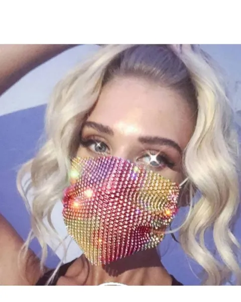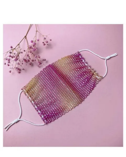 Cubrebocas de lujo con cristales color salmón. Este producto es un accesorio por lo que debe usarse acompañado por un cubrebocas quirúrgico.