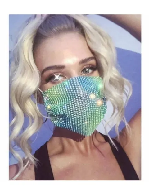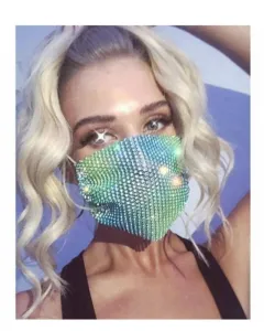 Cubrebocas de lujo con cristales color verde, con elástico ajustable.Este producto es un accesorio por lo que debe usarse acompañado por un cubrebocas quirúrgico.