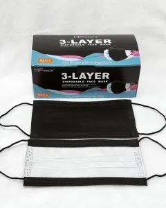 Cubrebocas tricapa negro, 100 piezas. Cubrebocas tricapa termosellados plisados con ajuste nasal, reforzados.Dos cajas de 50 piezas cada una, en total 100 piezas.