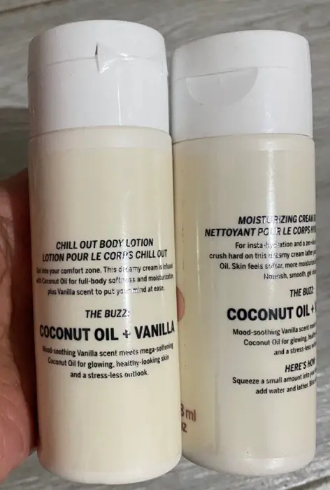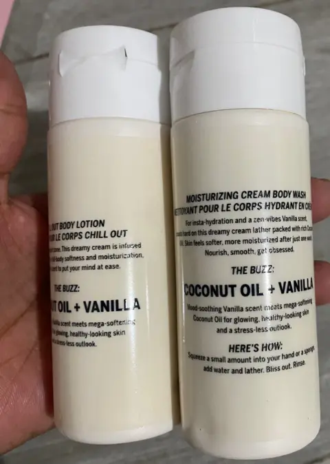 Body wash y loción de coco con vainillaEstán nuevos! Tengo la caja un poco dañada pero nunca se usaron!