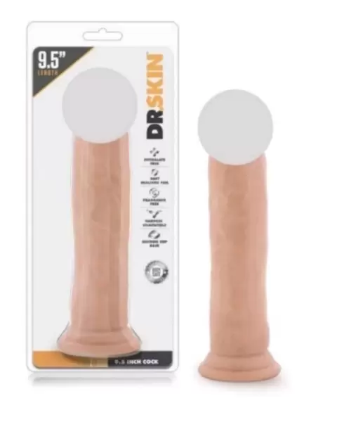 Dildo Realista. Envios 100% discretos y seguros.Dr. Skin 9.5 Inch Cock está diseñado para cumplir todas tus fantasías de tamaño. Este consolador largo y grueso tiene todas las venas y texturas esculpidas de un pene grande real. Construido con una poderosa ventosa, puede pegar el Dr. Skin 9.5 Inch Cock en cualquier superficie lisa y plana para jugar solo, o amarrarlo a su arnés. Este consolador está hecho de PVC suave sin ftalatos. El material seguro para el cuerpo es fácil de cuidar: simplemente lávelo con agua y jabón o con un limpiador de juguetes, luego déjelo secar al aire antes de guardarlo.Tamaño:9.5 pulgadas Insertables :8.5 pulgadas Ancho: 3 pulgadas