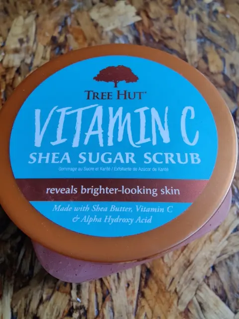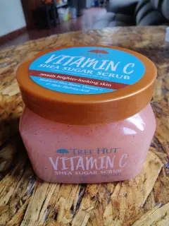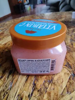 Delicioso exfoliante corporal hecho de manteca de karité, vitamina C y alfa hidroxiacido. Revela tu piel con un aspecto más brillante. Tarro grande de 510 grs. Importado