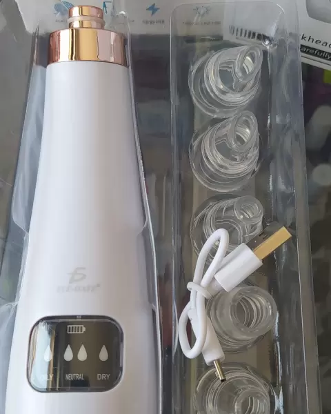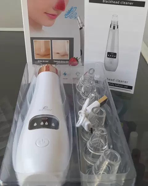 Limpiador de poros y extractor de espinillas, 3 velocidades, 5 cabezas de succión, recargable con cabe USB.