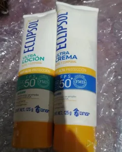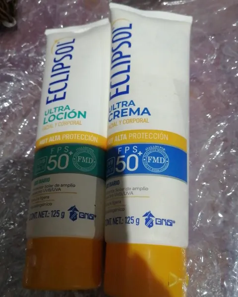 Loción y crema facial Eclipsol. Uno es ultra loción facial y corporalSegundo ultra crema facial y corporal
