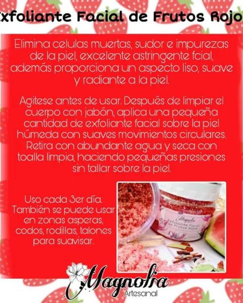 Exfoliante facial de frutos rojos y Exfoliante labial de mangoElimina células muertas de la piel.