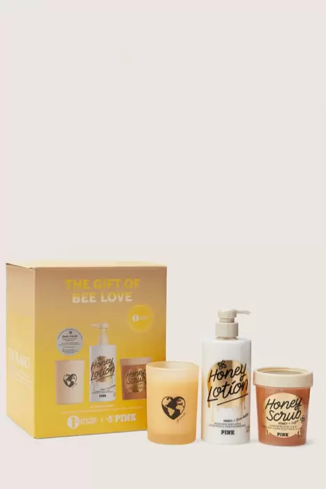 Pink Honey Box edición limitada. Directamente desde la colmena. La miel es un remedio centenario y un auténtico milagro para tu piel. Incluye:Honey Loción 414 ml/ 14 fl ozHoney Exfoliente 10oz/283g Vela