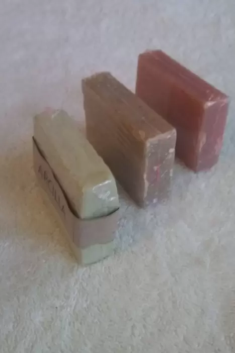Set de 3 jabones artesanales, presentación de 90 gms cada jabón, 1 es de arcilla, este jabón natural está recomendado para pieles grasas, con impurezas o con puntos negros. 1 jabón de avena y miel, con propiedades antibacterianas y antioxidantes que nos aporta la miel y la avena, mantendrá nuestra piel hidratada, con una barrera natural contra los radicales libres, que nos ayudará contra las bacterias causantes del acné y de otras que causan imperfecciones en nuestra piel, mientras mantenemos nuestra piel tersa y suave, y 1 de rosas con miel, con excelentes propiedades hidratantes y nutritivas que suavizan y humectan tu piel con el dulce aroma de la miel y los pétalos de rosas. Son jabones artesanales, por lo que no tienen marca. El precio de cada jabón es de $ 95.00 cada uno, vendo el set de los 3 jabones en $ 225.00 Te invito a que visites mi closet y armes tus propios paquetes y conjuntos.