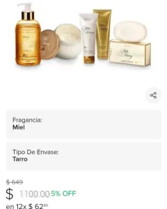 SET MILK HONEY. ⭐SET MILK HONEY ORIFLAME🌟PRECIO REAL 1️⃣1️⃣0️⃣0️⃣ ❌PRECIO PROMOCION💲7️⃣5️⃣0️⃣El set incluye:· Jabón Líquido para Manos Milk & Honey Gold 300 mlEl Jabón Líquido para Manos Milk & Honey está formulado con extractos orgánicos procedentes de la Leche y la Miel. Limpia las manos suavemente y sin resecar dejándolas nutridas y deliciosamente perfumadas.- Limpia suavemente sin resecar- Deja las manos suaves y flexibles- Deja la piel maravillosamente fragante y suave· Mascarilla para Cabello Radiante Milk & Honey Gold 250 mlMascarilla nutritiva y cremosa que hidrata tu cabello y lo suaviza. Formulada con una combinación de ingredientes acondicionadores, de lujosas texturas y un aroma delicioso. Enriquecida con extractos orgánicos de leche y miel.· Crema de Manos Milk & Honey 75 mlLa Crema de Manos Milk & Honey está formulada con extractos orgánicos de Leche y Miel, posee una rica textura nutritiva y una deliciosa fragancia que deja tus manos delicadamente perfumadas. Proporciona una hidratación intensiva 24 horas y las deja suaves y sedosas.· Exfoliante de Manos Milk & Honey 75 mlRevela la belleza de unas manos más suaves con este exfoliante cremoso para manos. Enriquecido con extractos orgánicos de Leche y Miel, favorece la eliminación de las impurezas y las células muertas de la piel gracias a su fórmula con cáscara de Almendra. Devuelve la luminosidad y la apariencia saludable a las manos y las prepara para recibir su tratamiento hidratante- Lava las manos con Jabón Líquido para Manos Milk & Honey y sécalas con una toalla suave.- Deposita una pequeña cantidad de exfoliante en la palma de la mano. Masajéalo sobre ambas manos.- Enjuaga con agua fría abundantemente· Ja