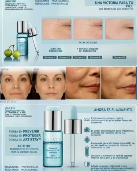 Suero facial AntienvejecimientoÁcido Hialurónico + Vitamina CRellena arrugas y poderoso antioxidanteHidratación profundaPiel más joven, luminoso y radianteIncluye asesoría con cosmetóloga de regalo