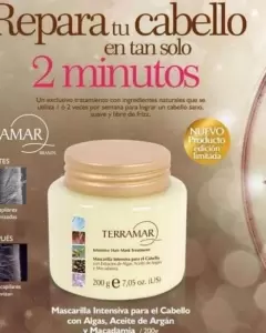 Mascarilla para el cabello. La Mascarilla intensiva de Terramar es un tratamiento con ingredientes naturales que se utiliza 1 ó 2 veces por semana para lograr un cabello sano, suave y libre de frizz.Ayuda a reestructurar la fibra capilar, suavizar, y eliminar el frizz. Al ser rico en aceites esenciales conseguirás mantener tu cabello largo y saludable.