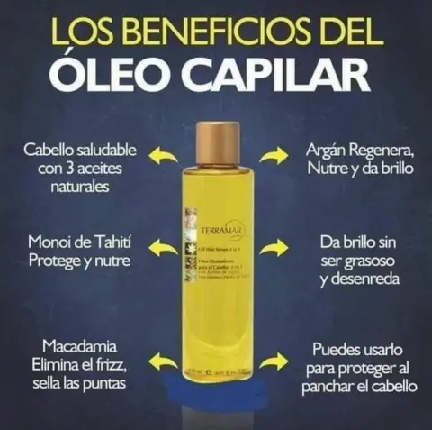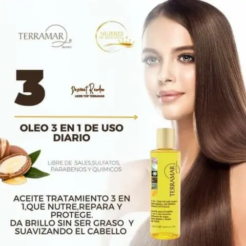 Oleo terramar. Ayuda al frizz Repara puntas abiertas Brillo Sedosidad De 98ml. Libre de sales sulfatos y parabenos