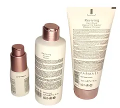 Set reviving farmasi. Shampoo, acondicionador y tratamiento capilar para prevenir la caída del cabello