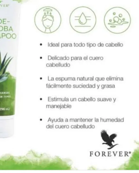 Ayuda a mantener el cabello limpio y sedoso, combate la caída y la cazpa.Hecho a base de sábila, muy buen producto.