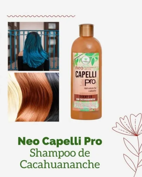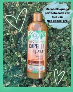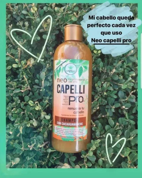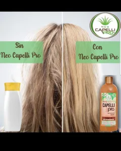 Shampoo neo capelli pro Crecimiento acelerado. Este shampoo acelera el crecimiento, es excelente fortificante capilar que aporta volumen, brillo al cabello delgado y débil. Estimula la producción de queratina en el folículo. Proporciona fuerza y resitencia evitando el quiebre del cabello. 100% natural Apto para toda la familia