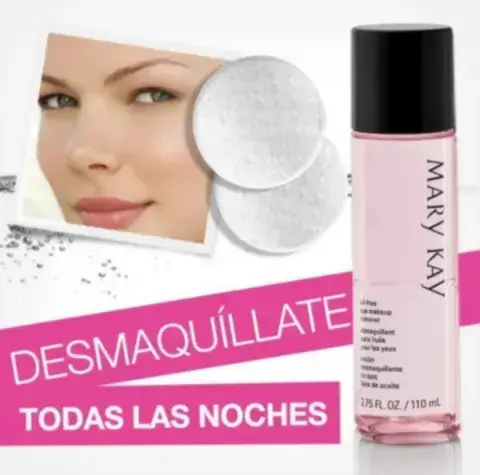 Loción desmaquillante para ojos libre de aceite Mary Kay, hasta el maquillaje más intenso se desvanece con suaves movimientos. Contiene 110 ml.