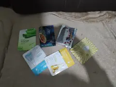 Exelente lote de cuidado de la cara. Incluye, 10 mascarillas para cutis, 2 sérums aclaradores, 1 exfoliante corporal y de cara, un BB CREAM, y un masajeador electrónico para cara, y una caja de mascarillas para puntos negros.