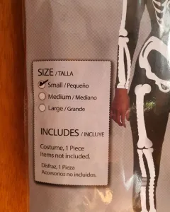 Disfraz de esqueleto talla chica S NO INCLUYE MASCARA