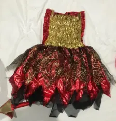 Disfraz de diabla para mujerSeminuevo (Solo se uso una vez)Es talla ChicaColor Rojo con doradoLargo a la altura de la rodillaStraplessIncluye capa que llega hasta el piso y diadema de cuernos