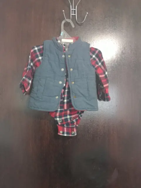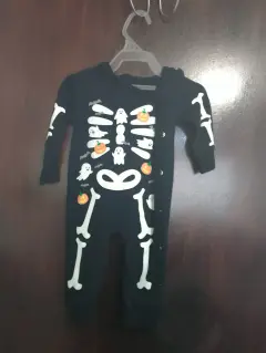 1 mameluco de calavera talla 9 mesesY 1 mameluco cuadrado navideño con chaleco gris calientito 9 a 12 meses