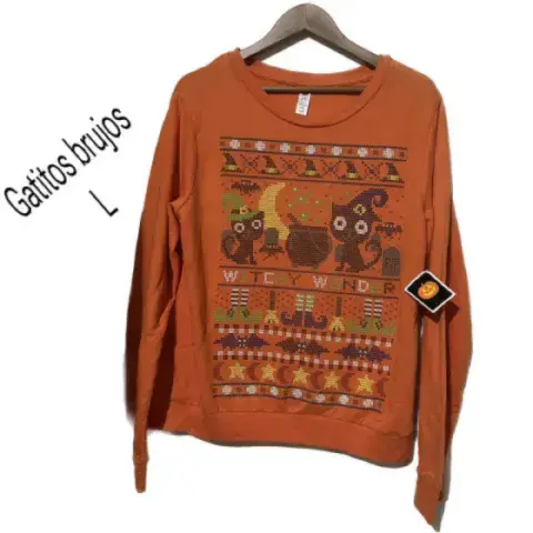 Sudadera de gatitos brujos a estrenar con etiqueta en talla L, sin detalles hombros 46 cm, axila 55 cm, largo 60 cm