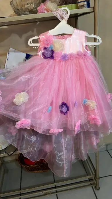 Vestido de fantasía. Vestido para sesión de fotos de fantasía queda a 1-2 años, no se utilizó está nuevo es de tul finísimo y flores echas a mano con listón, está hermoso, trae su diadema