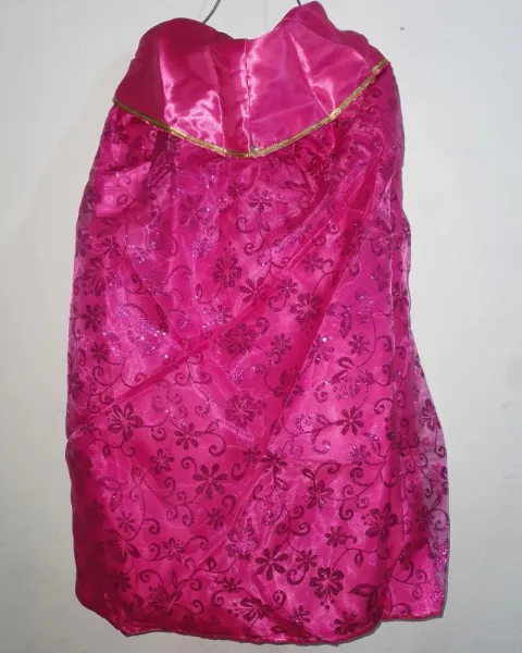Para niña de 8 a 10 años, cuatro piezas (capa, vestido parte posterior, falda parte inferior, creolina de tela).Es desmontable, tela gruesa, resistente y brillante.