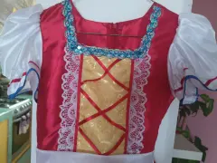 Vestido típico de Holanda. Hermoso vestido con excelente calidad en su hechura, color rojo con amarillo y vivos azules con detalles en el pecho de encaje y lentejuela tono azul turquesa talla 8