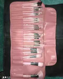 Cartera de brochas. Set de Brochas 24 Piezas Pinceles de Maquillaje Suaves Pinceles para Sombras de Ojos, Cara y Cepillos para Polvos Maquillaje Cartera color rosa