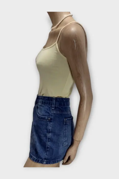 Clock House Falda Dama Mezclilla Azul 44 XXL. Clock House Falda Dama Mezclilla Azul 44 XXLFalda marca Clock House en mezclillaMarca: Clock HouseOrigen: BrazilMaterial: Mezclilla AlgodónTalla: 44 XXLEstilo: CasualPatrón: Minifalda MezclillaColor: Azul Cierre: Cremallera y BotónCintura: 46 cmCadera: 55 cmLargo: 36 cmTiro: BajoRopa de USO en muy buen estadoModelo único Lo que ves es lo que compras