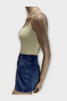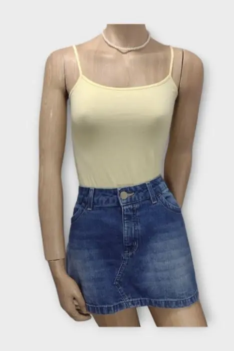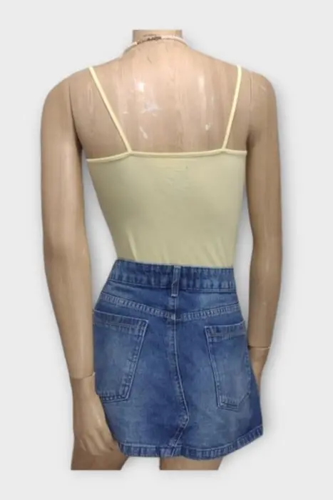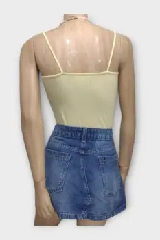 Clock House Falda Mezclilla Azul 44 XXL. Clock House Falda Dama Mezclilla Azul 44 XXLFalda marca Clock House en mezclillaMarca: Clock HouseOrigen: BrazilMaterial: Mezclilla AlgodónTalla: 44 XXLEstilo: CasualPatrón: Minifalda MezclillaColor: Azul Cierre: Cremallera y BotónCintura: 46 cmCadera: 55 cmLargo: 36 cmTiro: BajoRopa de USO en muy buen estado