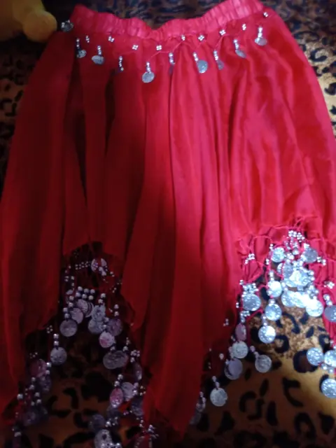 Falda para danza árabe sin detalles color roja Unitalla solo falda , tiene todas las moneditas ninguna caída