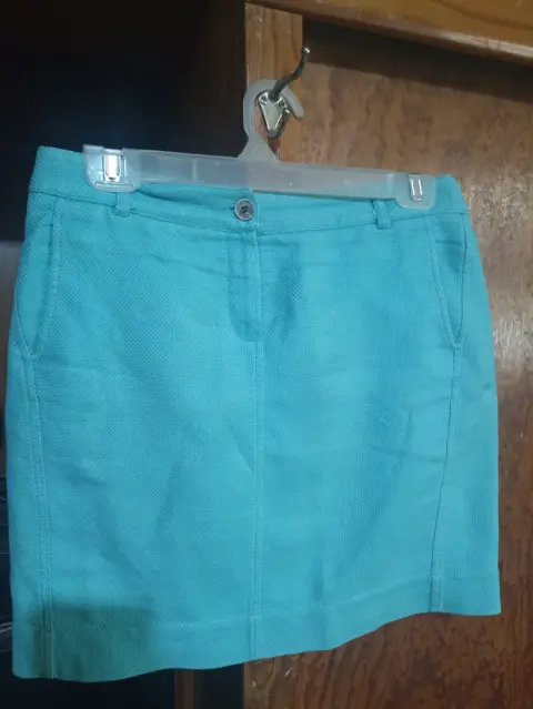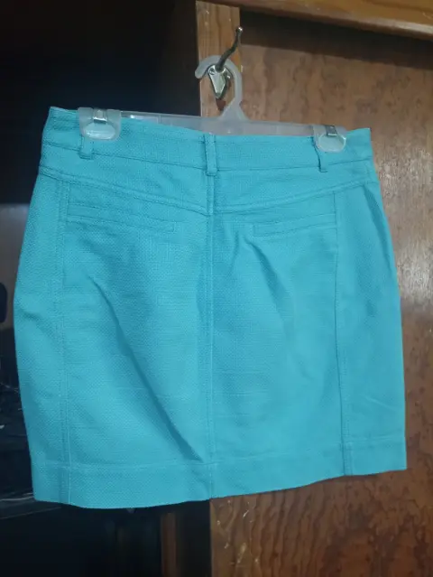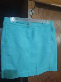 Falda. Mini falda color azul agua, bolsas si muladas, algodón, cierre al frente