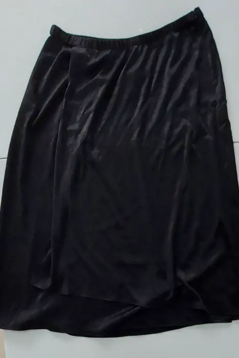 Falda negra, largo al tobillo, corte asimétrico al frente, parte trasera lisa Tela Poliester