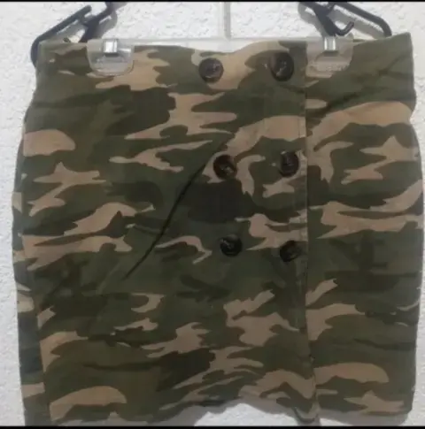 Falda recta, color verde militar o camuflajeTalla 7Cierre en la parte de atrás.Sin bolsasPerfecto estado