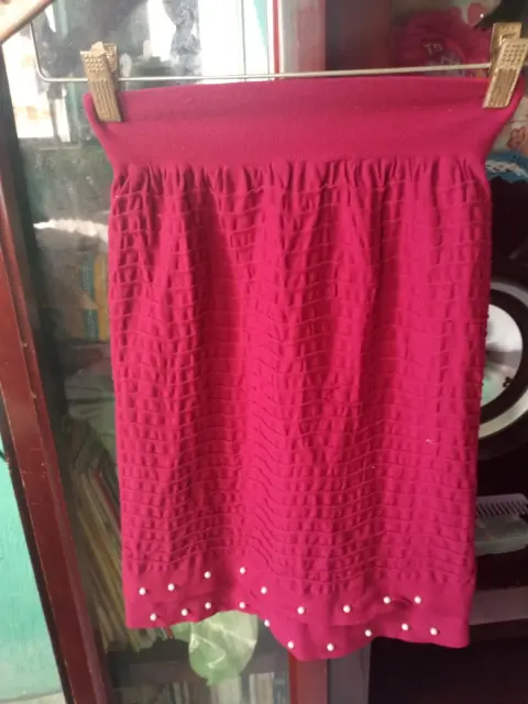 Falda. Tela tipo licra, es unitalla, color vino oscuro con bolitas blancas en la orilla, nueva sin etiqueta