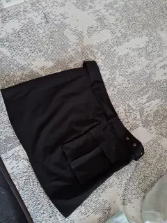 Hermosa mini falda color negro talla xg bonita detalle de bolsa al costado derecho también como un cinturón incluido