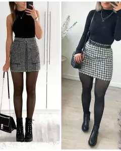 Falda a cuadros blanco y negro. Bonita falta tipo escocesa, NUEVA.No transparenta, la tela estira muy bien . Queda a una talla M e incluso da a L.Trae cintas para cinturon.La compré en Shein pero se le descosió la etiqueta.Las últimas imágenes son sugerencia de outfit.¡Gracias por visitar mi closet!