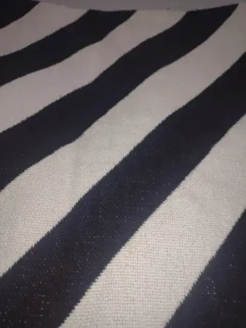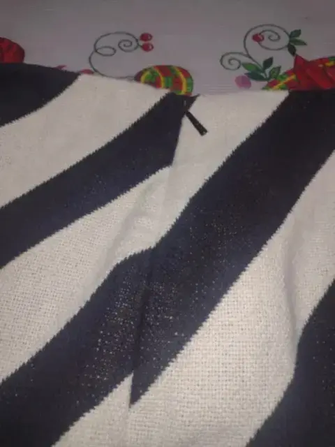 Falda a rayas beige /negro. Falda rallada con cierre oculto al lado y forro la etiqueta se la. Quitaron, pero tiene la etiqueta Interna color y tela en buen estado. 42 cintura y largo 36cm cadera 59cm