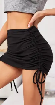 Falda ajustable con cordón al lado para ajustar el largo, es negra y es unitalla