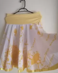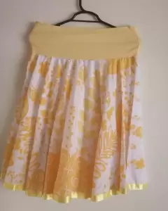 Falda amarilla. Falda sueltaColor: blanco con amarilloTalla: UnitallaMedidas: *Cintura tela ajustable de 34 cm a max 45 cm.*Largo de 57 cm.No trae bolsasEs tela delgada perfecta para temporada de calor.Detalle: Tiene como un ligero manchon de azul, ultima fotoCupón: JanMoPBn0H