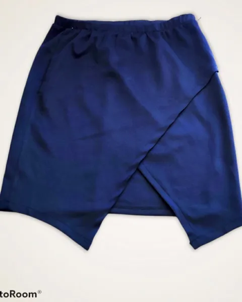 Falda asimétrica. Se puede usar con tacones o con tenisTiene resorte en la cintura y la tela es strechTela 95%poliester 5% elastano Medidas Cintura 39 cm lado a lado sin estirar de un Cadera 50 cm Altura 50 cm Es talla grande pero queda bien a M