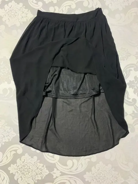 Falda asimétrica Forever 21. Falda ligera con forro interior, corte asimétrico, cierre oculto a un costado.Medidas/ cintura: 36 cm, cadera: 65 cm, largo frontal: 49 cm, largo trasero: 79 cm.