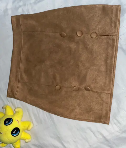 Falda aterciopelada ☀️. Hola chicas les traigo esta preciosa falta de tela aterciopelada , viene un poco grande de la cintura, pero se amolda muy linda de la cadera ,los detalles de los botones se ve muy linda ,justa para cualquier ocasión ❤️
