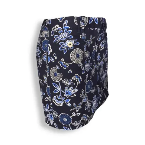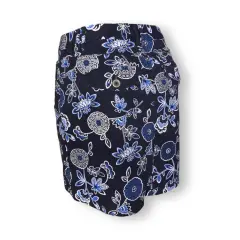 Falda azul estampada con flores. 98% algodón, 2% spandexFalda imprescindible: si deseas estilizar tus piernas y verte elegante, esta es tu falda. Puede ser una falda básica, pero cada chica necesita una para estas en su armario. Esta falda se puede combinar con todo lo que hay dentro de tu armario