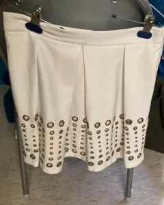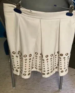 Falda blanca con estoperoles dorados. Falda en corte A con estoperoles dorados súper linda