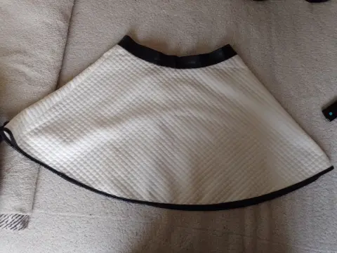 Falda blanca con negro. La cintura es de piel con cierre invisible corta talla exacta 10
