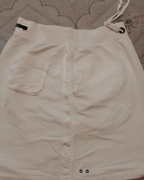 Falda blanca super fresca, tiene bolsillo en la parte de atras y en los lados, es talla xs pero biene algo amplia. Crea un look genial con tenis!! Es marca converse.