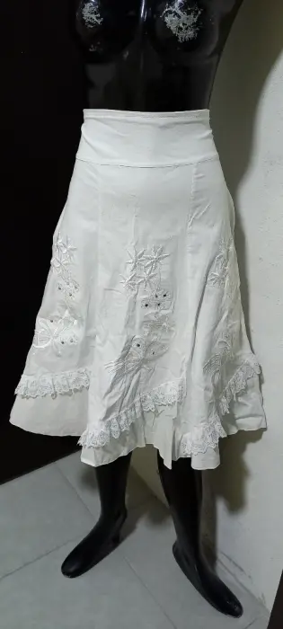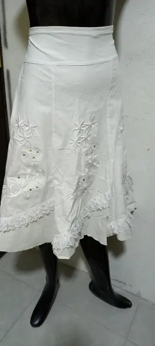 Falda blanca strech de mantilla fresca blanca. Gracias por tu visita ..En esta ocasión te traemos:..................................................................................TALLA mMARCA sin etiqueta COLOR blancoSTRECH siTELA mantillaMADE IN ?MEDIDAS CINTURA 41 cm CADERA 54 cm LARGO Las medidas son de lado a lado de la prenda